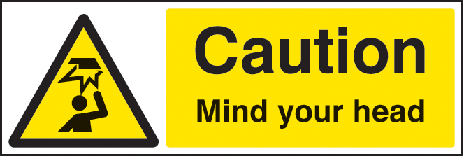 14216M: Caution mind your head Material: 1: Rigid Plastic Size: M (600x200mm)