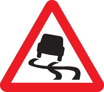 57923: Slippery road 750mm triangle Class RA1 zintec