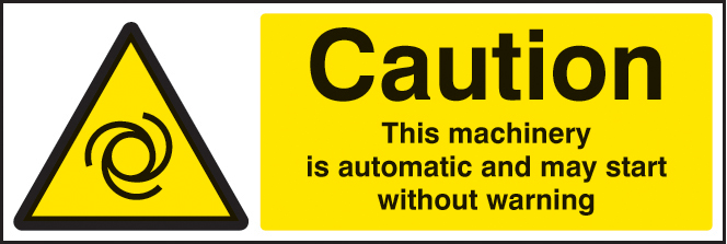 84228G: Caution this machinery is automatic etc Material: 8: Quick-Fix Rigid PVC with SAV Backing Size: G (300x100mm)