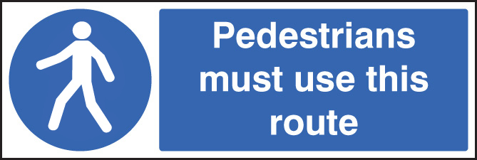 85428G: Pedestrians must use this route Material: 8: Quick-Fix Rigid PVC with SAV Backing Size: G (300x100mm)