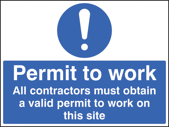 16411K: Permit to work all contractors must obtain a permit Material: 1: Rigid Plastic Size: K (400x300mm)