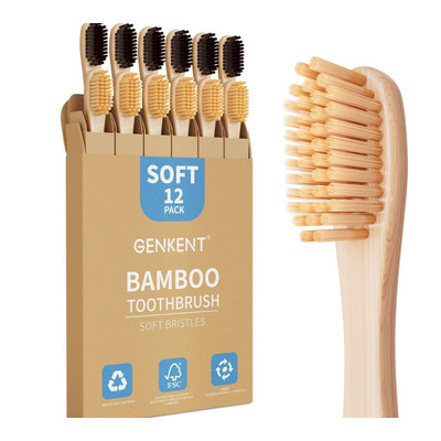 AMGEN - GENKENT 12 Counts Bamboo Toothbrush Eco Friendly Natural Charcoal Toothbrushes with BPA Free Soft Bristles